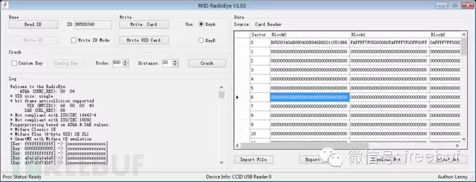 RFID RadioEye(http://radioeye.sinaapp.com/)是一款基于Libnfc开源组件的RFID安全审计工具,主要功能有:卡ID读写、卡数据读写、卡片破解、dump文件导入导出与上传下载。 这是一个造轮子的工具,从RadioWar团队的NFC-GUI借鉴而来,完善了一些基本功能并加入一些好用的功能。